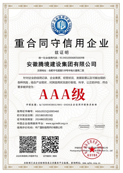 AAA级重合同守信用企业