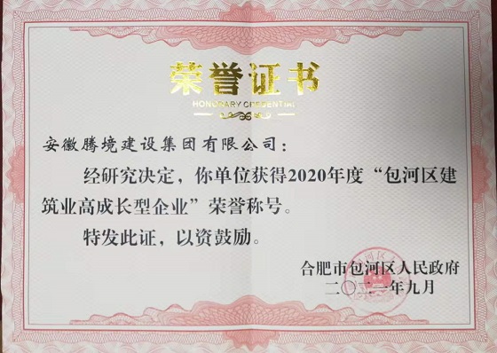 包河区2020年度“六稳”“六保”建筑业发展突出贡献奖