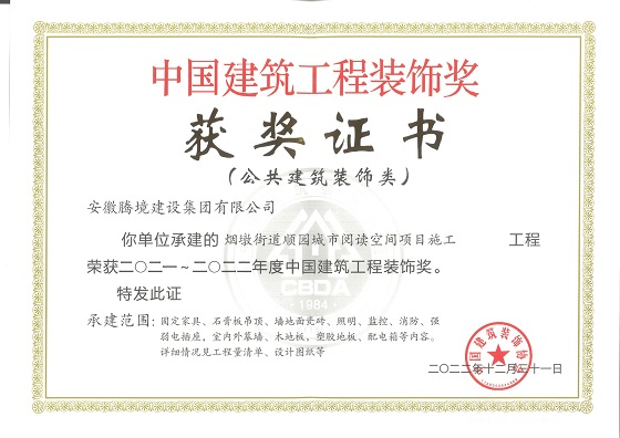 2021-2022年度中国建筑工程装饰奖获奖证书