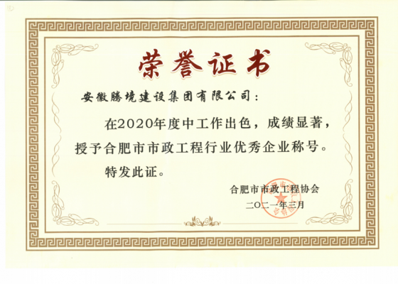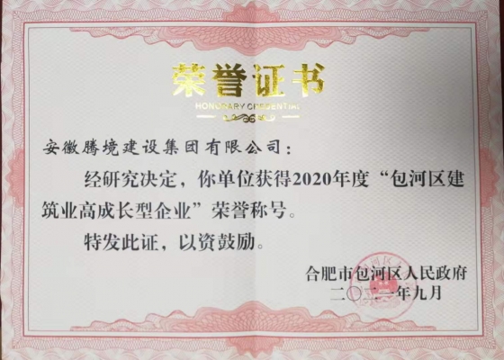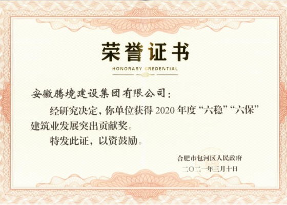 包河区2020年度“六稳”“六保”建筑业发展突出贡献奖